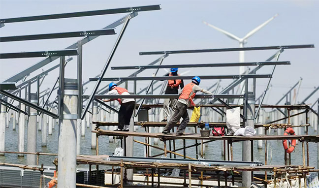9月19日,由集團(tuán)和悅達(dá)集團(tuán)、興海控股集團(tuán)合資建設(shè)的悅海灌東鹽場(chǎng)150MW漁光互補(bǔ)光伏發(fā)電項(xiàng)目獲《中國(guó)日?qǐng)?bào)》海外版報(bào)道!2025-09-19 -