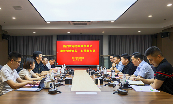 7月17日下午,蘇州城投集團黨委書記、董事長盛夢龍一行到集團考察,集團黨委書記、董事長董毅熱情接待。2024-07-17 -